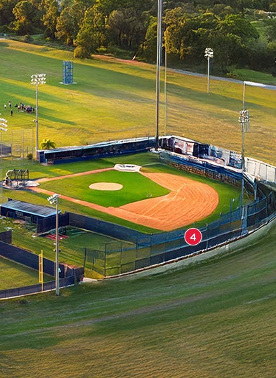 outdoor lights while galvanized steel fences secure the campus perimeter. Steel’s